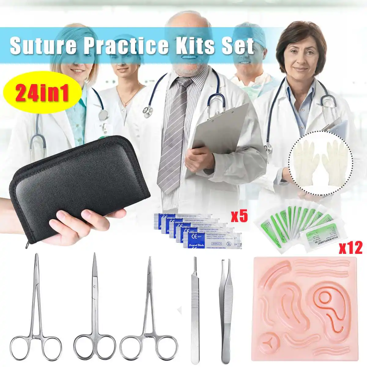Medical Instruments Suture Surgical Training Kit 3D Silicone Suture Pad Surgery Needle Scissors Laparoscopic Simulation Practice