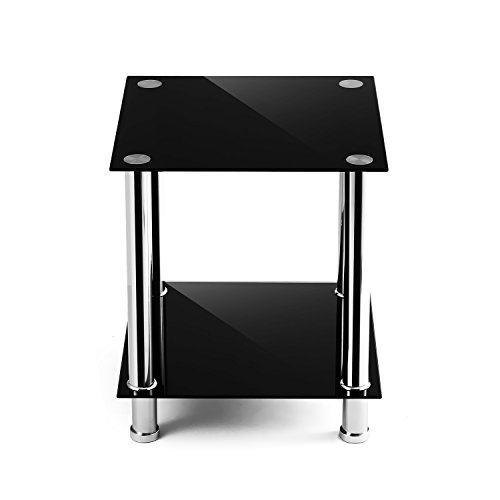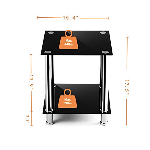 Tempered glass side tables , 4 legs support make table steady and strong , chrome finishing make whole product shiny and nice .▶DIMENSIONS:15.4"L x 15.4"W x 17.7"H