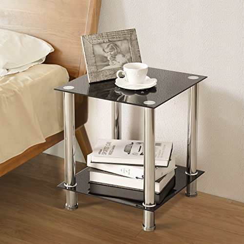 ▶ELEGENT DESIGN AND HIGH QUALITY FINISH -- This multi-use table idealy designed for your home . High quality safty black temperd glass and stainless steel tube harmony match for your living room and bedroom .