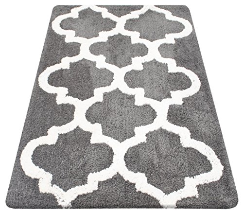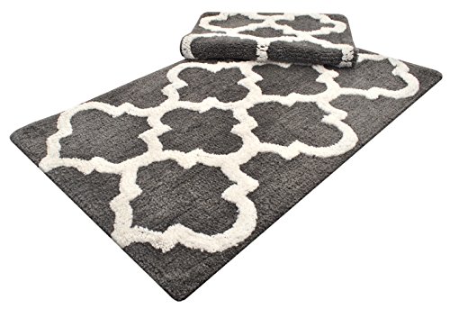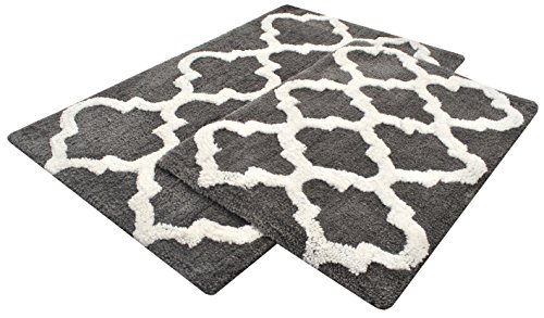 2 piece Plush Deluxe Micro Trellis Design Bathroom Rugs Set 21 x 34 / 17 x 24 Inches with Anti-skid latex backing keeps Bath mat firmly in place