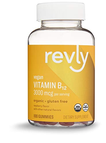 Revly Vitamin B12 gummies are vegan, certified USDA organic, and gluten free. They feature raspberry flavor with other natural flavors.