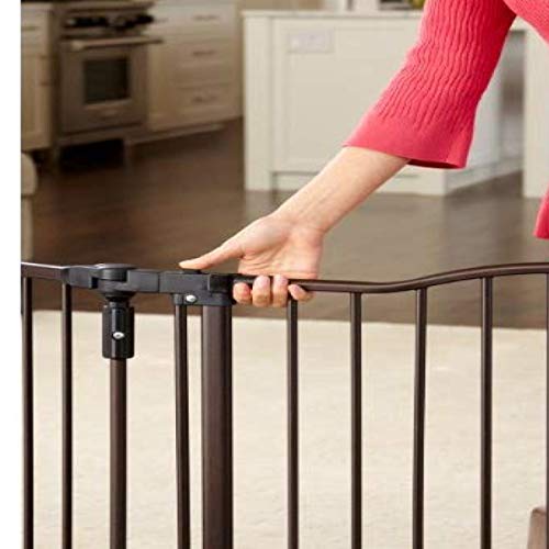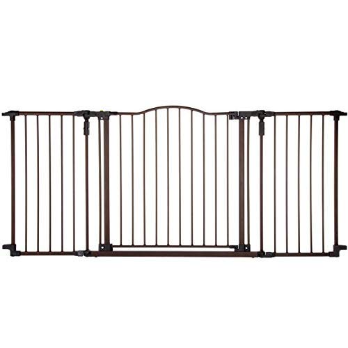 The North States Deluxe Decor Gate offers added security and style for large openings. The exclusive matte bronze finish is designed for exceptional richness, durability and depth of color while its heavy-duty metal construction is built to last! The easy one-hand operation and stay-open feature will sure to assist any busy parent. For additional security, this gate offers one swinging walk-through panel built with a child-proof double-locking system. This gate panel is an extra-wide 25.5 inches wide making it the perfect size for the entire family. To keep the gate panel open, simply use the hold-open feature to prevent the gate from closing. When the gate is not in use, simply swing it out of the way. The Deluxe Decor Gate hardware mounts on straight or angled walls using pivot points on the gate panels. It's ideal for a variety of room opening measuring 38.3 to 72 inches wide and is 30 inches high. The added security and peace of mind that this gate provides is sure to please.Built from long lasting heavy-duty metal and finished in an exclusive matte bronze finish this baby gate is sure to complement any home decor.
