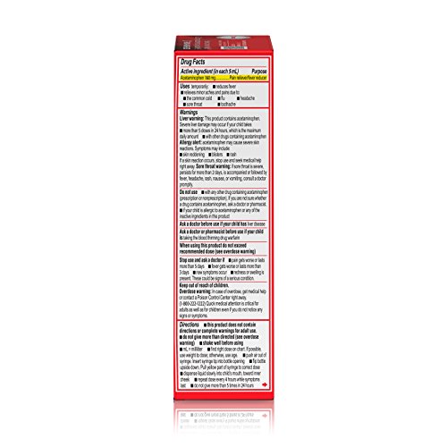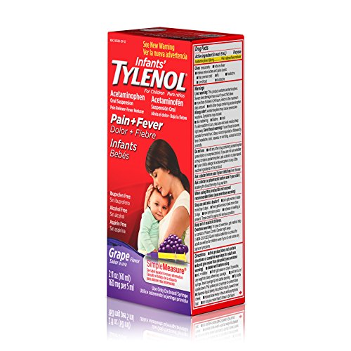 Relieve your child’s aches and pains with Infants' Tylenol Oral Suspension. Containing 160 milligrams of acetaminophen per 5 milliliter dose, this product temporarily reduces fever and relieves minor aches and pains due to the common cold, flu, sore throat, headache, and toothache. This grape-flavored product works without upsetting little stomachs. A dosing syringe is included for dispensing the proper dosage for your child's age and weight. It is intended for children 2 to 3 years; ask a doctor about dosage for infants under 2 years.Relieves minor aches and pains and reduces fever in children