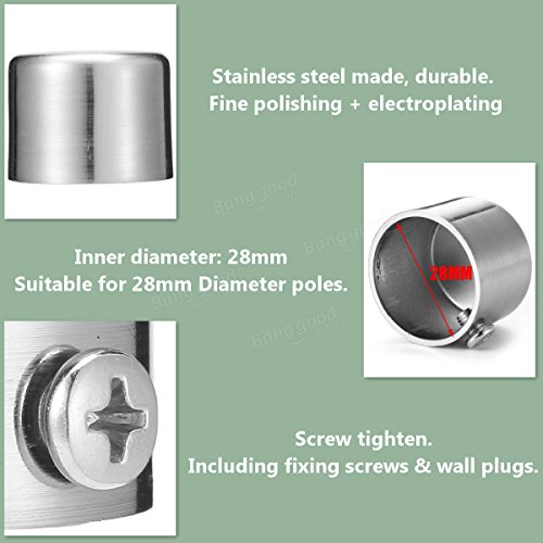 28mm Stainless Steel Window Curtain Rod Pole Finials End - Tools, Industrial & Scientific Hardware & Accessories - 1 x Curtain Pole End Cap, More Details: ,