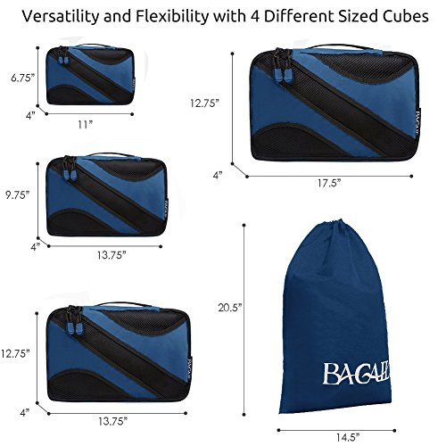 4 Packing Cubes With Laundry Bag- Extra Large( 17.5" x 12.75" x 4") Large (13.75" x 12.75" x 4") Medium (13.75x9.75x4) Small (11" x 6.75" x 4");