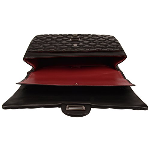 Ainifeel Women's Quilted Oversize Genuine Leather Shoulder Handbag Hobo Bag Purse (X-Large, Black with...