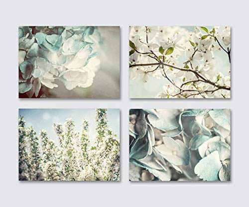 UNFRAMED perfectly coordinated set of 4 individual fine art flower photographs featuring Hydrangea, Cherry and Dogwood.