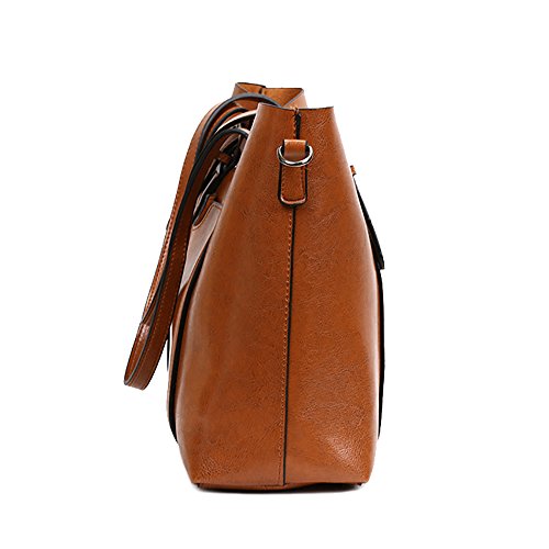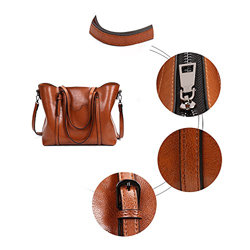 Material: High quality greased leather, it is faux leather, not genuine leather; Closure: Top Zipper Closure