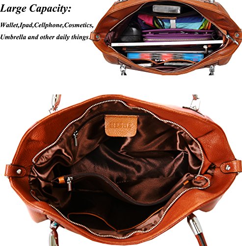 [Strap:] Double handle strap with Detachable long shoulder strap for this classic handbag. The drop of top handle is 7.48in,long enough to put on your shoulder. The removable and adjustable long shoulder strap is about 45.66in-51.57in.Convenient & Comfortable to wear in 3 ways: Tote, Shoulder and Cross Body.