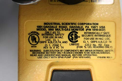 INDUSTRIAL SCIENTIFIC 1810-5437 M40 MULTI-GAS MONITOR 100-240V-AC D633243Voltage (AC): 100 - 240 V-AC