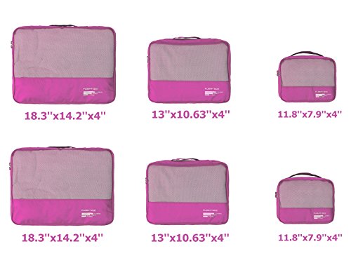 6 Travel Packing Cubes:Large(18.3''x14.2''x4'')x2 +Meduim(13''x10.63''x4'')x2+Small(11.8''x7.9''x4'')x2.
