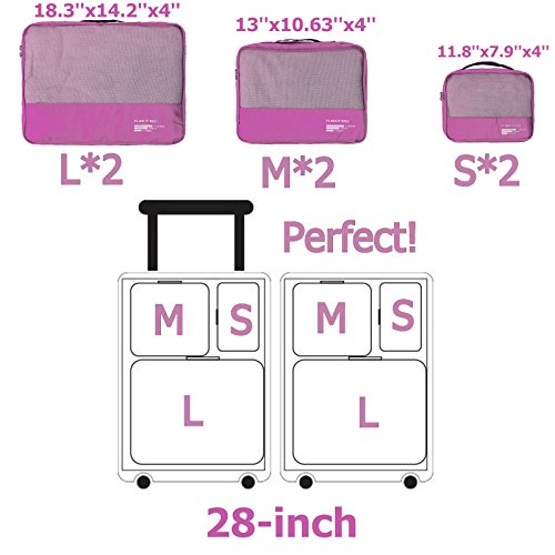 6 Travel Packing Cubes:Large:(18.3''x14.2''x4'') x2;Meduim:(13''x10.63''x4'')x2;Small:(11.8''x7.9''x4'')x2;Perfect for 28-inch suitcase.