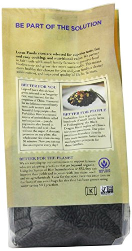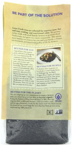 Lotus Foods Black Forbidden Rice, 15 Ounce -- 6 per case. Shlef Life: 360 daysKosher, Gluten Free, Vegan and 100% Whole Grain