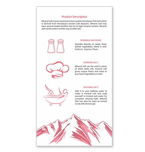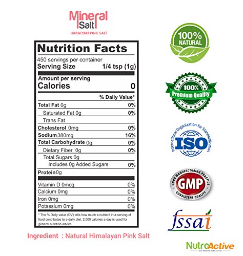 Mineral nutrient are essentially required by all living organism. Major minerals available in human body are calcium, phosphorus, potassium, sulfur, sodium, chlorine, magnesium, iron, cobalt, copper, zinc, molybdenum, iodine, selenium etc. Himalayan Pink Salt contains 84 different types of minerals. Mineral Salt is pure natural premium quality Himalayan Pink Salt which is derived from Himalaya's ancient salt deposits. Mineral Salt may have several health benefits due to its high mineral content. Mineral Salt can be used in similar way as table salt.100% NATURAL HIMALAYAN PINK SALT-- Mineral Salt contains 100% natural Himalayan Pink Salt from Himalayas in PAKISTAN and packed in INDIA. Mineral Salt contains 84 minerals a few of which include sodium chloride, sulphate, calcium, potassium, magnesium, copper, iron as compare to 2 minerals (sodium and chloride) in normal salt. When you consume pink salt, you actually get less sodium intake per serving than regular table salt.