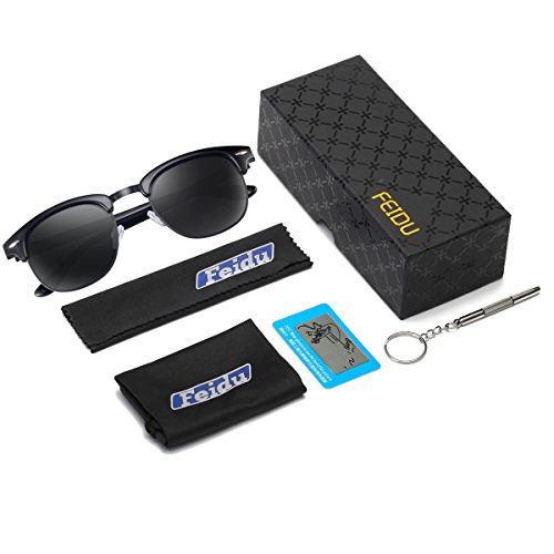 FEIDU SUNGLASSES Size Lens Width: 2.04" Lens Height: 1.73" Frame Length: 5.74" Bridge Width: 0.82" Arm Width: 5.43" Package 1x Sunglasses 1x Soft Glasses Cloth 1x Spectacle Case 1x Screwdriver 1x Exquisite Packaging Carton Style and Quality is what we convey to our customers. Make You Look Good with unique designs from FEIDU. FEIDU FD 3030 Polarized Clubmaster Sunglasses Features 100% UV Protection Filter out 99% of reflected glare without haze or optical distortion. Protect your eyes and enjoy a high clarity vision more comfortably. Classic Brand Design Sunglasses Classic and concise wrap around design. Looks low-key but reveals your high-end taste and style. Flexible and durable Suitable for Outdoor Activities Stylish and Protective. Suitable for both genders in most outdoor activities: cycling, climbing, golf, riding, driving, fishing, traveling, camping and more.POLARIZED HD VISION SUNGLASSES - We make our polarized sunglasses as comfortable as possible. Purchase from WSUK with confidence that the glasses you receive are fully CE certified and 100% UV400 protective.