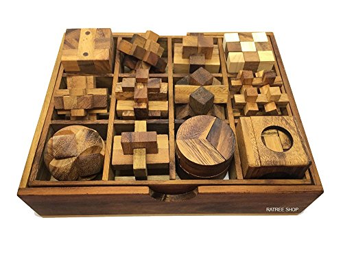 Thailand Handmade 100% from Thai artisan. Twelve Brain Teasers with the Puzzle Showcase, 12 Wooden Game Gift Set in a Wooden Box Size Approx. 9 x 9.3 x 2 inches, This is a great gift wooden puzzle set, contains 12 very popular wooden puzzles, !!Furthermore!! If you are finding a nice gift for your friend's birthday,holiday greeting gift, this is the right item for you.please leave a review and let us know about your experience with our products, Thank You.Handmade Puzzle Sets - Twelve Brain Teasers with the Puzzle Showcase, 12 Wooden Game Gift Set in a Wooden Box