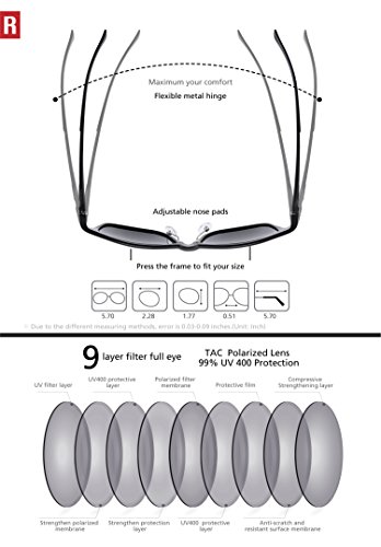 designed as polarized unisex sunglasses with uv protection, offer more ease for eyes and provide vivid color when you do self-driving or travelling around as a wayfarer with your families and friends