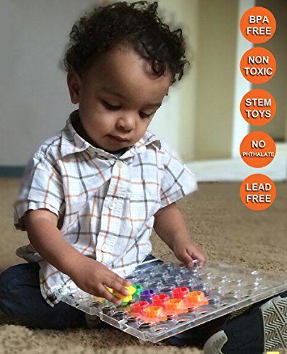 PLAYING = LEARNING with EDUCATIONAL TODDLER GAMES: The oversized button art peg set is great for developing fine motor skills & hand eye coordination as they push and snap. Use this learning toy to develop and strengthen visual perception skills, pincer grasp, visual motor coordination, making patterns, basic math including addition and subtraction, color sorting, matching & more! Make puzzles for toddlers 3 years of age and other toddler activities with these educational toys for 3 year olds.