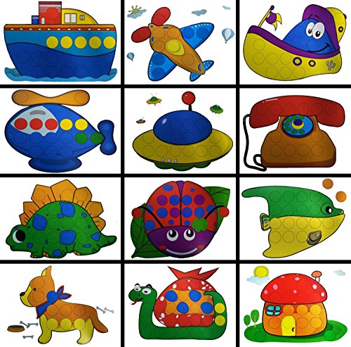 -1 Downloadable activity guideCOMPLETE PEG ART: 48 Large chunky peg buttons (red, orange, yellow, green, blue and purple), 12 easy to change illustrated image cards, 1 sturdy stand and 1 transparent peg board that sets up like an easel - simple enough for young toddlers. Simply place the large toddler arts & crafts patterns under the clear pegboard and follow the color of the beads to create a wonderful mosaic with these toys for 1, 2 year old girls and boys.