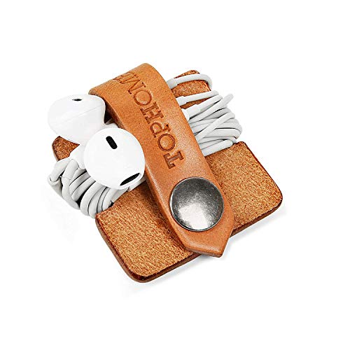 AWESOME DESIGN: Prime quality leather material for, upscale, durable use, the TOPHOME earbud organizer has a unique physique perfect for keeping unruly ear buds and headsets in order.