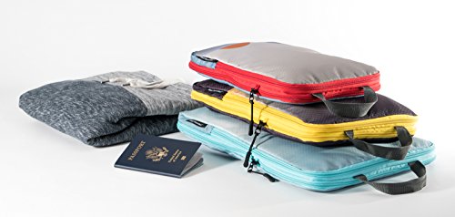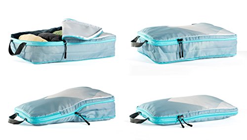 COMPRESSION PACKING CUBE SYSTEM. Double zipper makes it easy to pack it all. Packing bags expand to approx. 3.75" and compress to approx. 1.8".