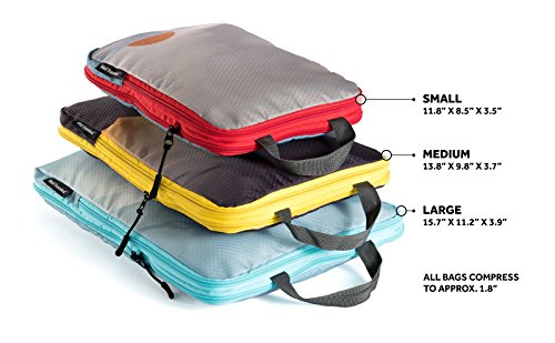 3 PIECE SET. Large (15.7" x 11.2"), Medium (13.8" x 9.8"), Small(11.8" x 8.5"). Packing organizers that fit into a backpack or suitcase. Luggage cubes for all carry-on or check-in travel bags.