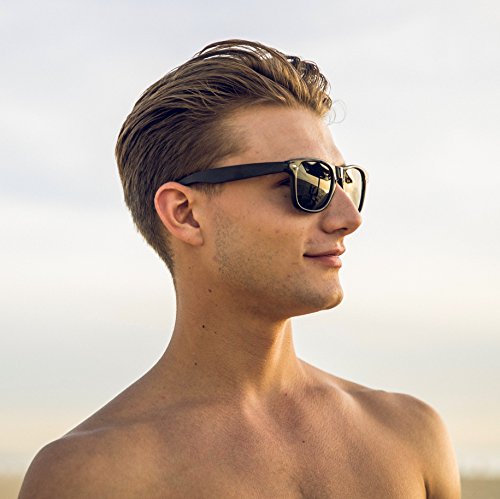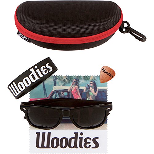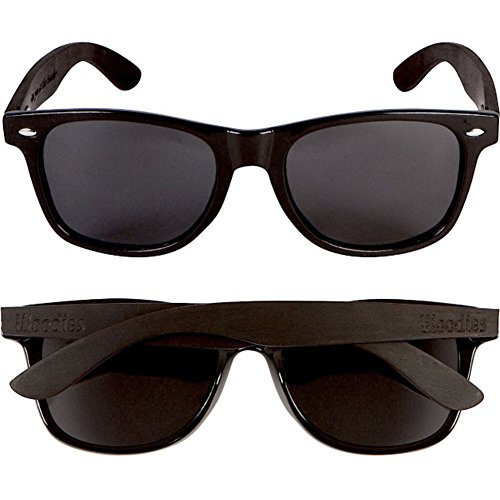Woodies Ebony Wood Sunglasses offer a combination of 100% Ebony Wood arms that support a wayfarer style plastic frame. Each pair is completely unique and has its own wood striations. The lightweight Ebony Wood offers a comfortable fit that is durable and sturdy at the same time. Our unique stainless-steel, double-spring hinges are sturdy and designed to keep their shape year after year. The lenses are specially designed so that they are both dark and polarized, offering 100% UVA/UVB protection even in intense lighting conditions. These glasses are stylish, durable, and natural. Each pair includes a durable black carrying case, a microfiber lens cleaning cloth and a wood guitar pick! 30-Day Money back Guarantee. Espanol: Lentes de Sol para Hombre y Mujeres, GafasHandmade from REAL Ebony Wood (50% Lighter than Ray-Bans)