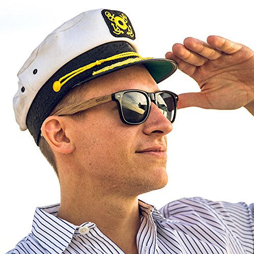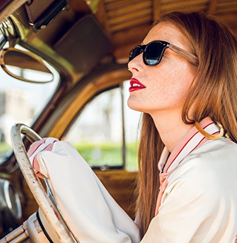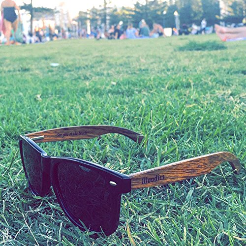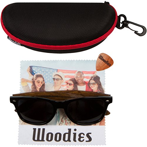 Woodies walnut wood polarized sunglasses offer a combination of 100% Walnut Wood arms that support a wayfarer style plastic frame. Each pair is completely unique and has its own wood striations. The lightweight Walnut Wood offers a comfortable fit that is durable and sturdy at the same time. Our unique stainless-steel, double-spring hinges are sturdy and designed to keep their shape year after year. The lenses are specially designed so that they are both dark and polarized, offering 100% UVA/UVB protection even in intense lighting conditions. These glasses are stylish, durable, and natural for men or women. Each pair includes a durable black carrying case, a microfiber lens cleaning cloth and a wood guitar pick! 30-Day Money back Guarantee. Goes great with a wood watch from Woodies! Fits MOST heads Espanol: Lentes de Sol para Hombre y Mujeres, GafasCOMFORTABLE: 50% Lighter than Ray-Bans