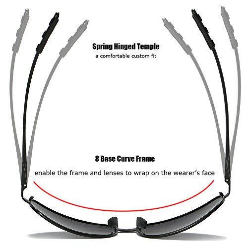 【Spring Hinged Metal Frame】----ZHILE wrap sunglasses is made of durable stainless steel metal frame and Al-Mg alloy arms; Spring hinged temple for a comfortable custom fit.