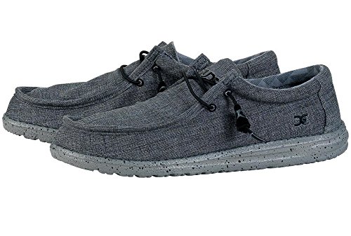 The Hey Dude Wally L Stretch will be an instant favorite in your modern-casual collection. Wally is Hey Dude best-seller, designed to be your favorite shoe for all occasions! A variety of upper materials allow for year-round wear. The last shape, combined with Flex and Fold sole system make it the lightest, most comfortable shoe on the market today. Wally 's low-top forefoot vamp is wide, allowing total circulation of the toe area, and a slightly lower instep arrests the foot preventing slippage. The heel pocket is anatomically correct, creating a superb feel even with custom orthotics.
