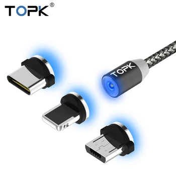 TOPK R-Line1 LED Magnetic USB Cable , Magnet Plug & USB Type C Cable & Micro USB Cable & USB Cable for Samsung Xiaomi Huawei LG