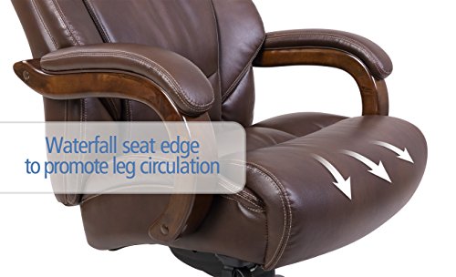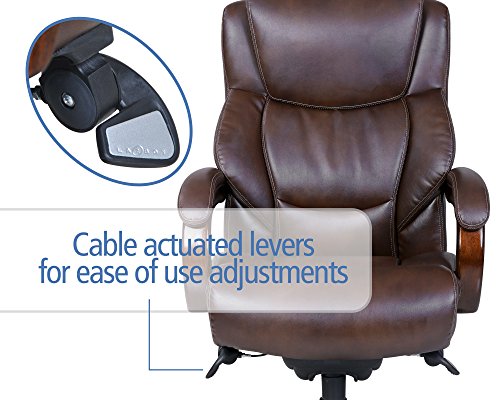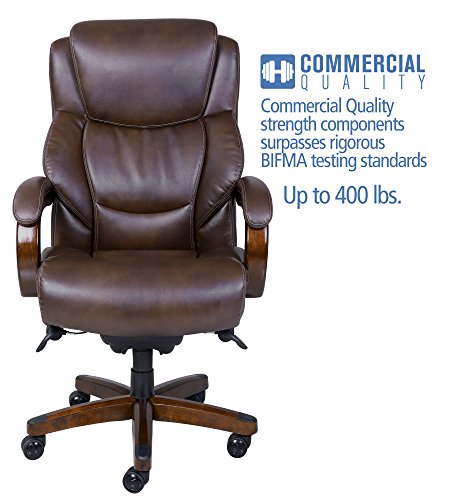 Trusted Quality and Craftsmanship From a trusted brand known for quality, traditional craftsmanship and comfort, the La-Z-Boy Delano Big & Tall ComfortCore Traditions Executive Office Chair incorporates a generous design with advanced performance for exceptional support and comfort at work and play. The ComfortCore Plus with Memory Foam advanced layering system offers unique zone-based support, placing cushioning in the areas you need it most. The strategically-assigned plush body pillowing and padded headrest on this Big & Tall office chair combine to provide neck support and minimize pressure points for relief from discomfort caused by prolonged sitting. This ergonomic chair is fully adjustable for a personalized fit. You can control the height, tilt and lift to suit your needs for customized positioning and optimized body alignment. The contoured lumbar area provides tailored lower back support to alleviate discomfort. Accommodating up to 400 lbs, this Big & Tall office chair is designed with a spacious seating area for a roomy fit and commercial-grade components that are made to last. This executive office chair features a thicker plywood subcore, reinforced back bar and heavy-duty castors for durability you can count on for all your day-to-day activities. Crafted with wood components, this high-back office chair is upholstered in soft bonded leather to create an elegant blend of traditional style and modern performance that is ideal for any office, home or entertainment space.ComfortCore Plus with Memory Foam advanced layering system provides plush cushioning and optimal firmness for exceptional support and comfort