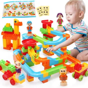 QWZ Funny DIY Race Run Track Colorful Construction Balls Rolling Track Building Blocks Compatible Legoings Duploe Bricks For Kid