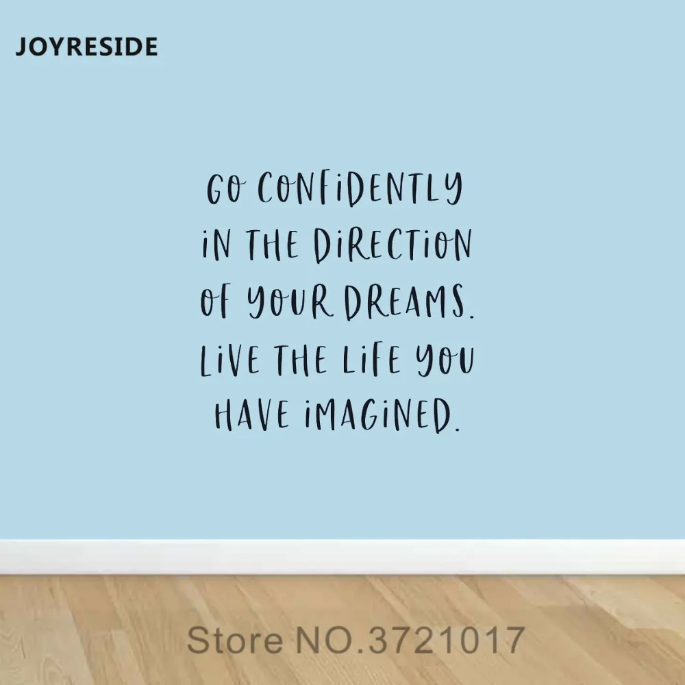 JOYRESIDE Go Confidently In The Direction Of Your Dreams Wall Quote Sticker Decals Vinyl Interior Home Design Art Murals A1229