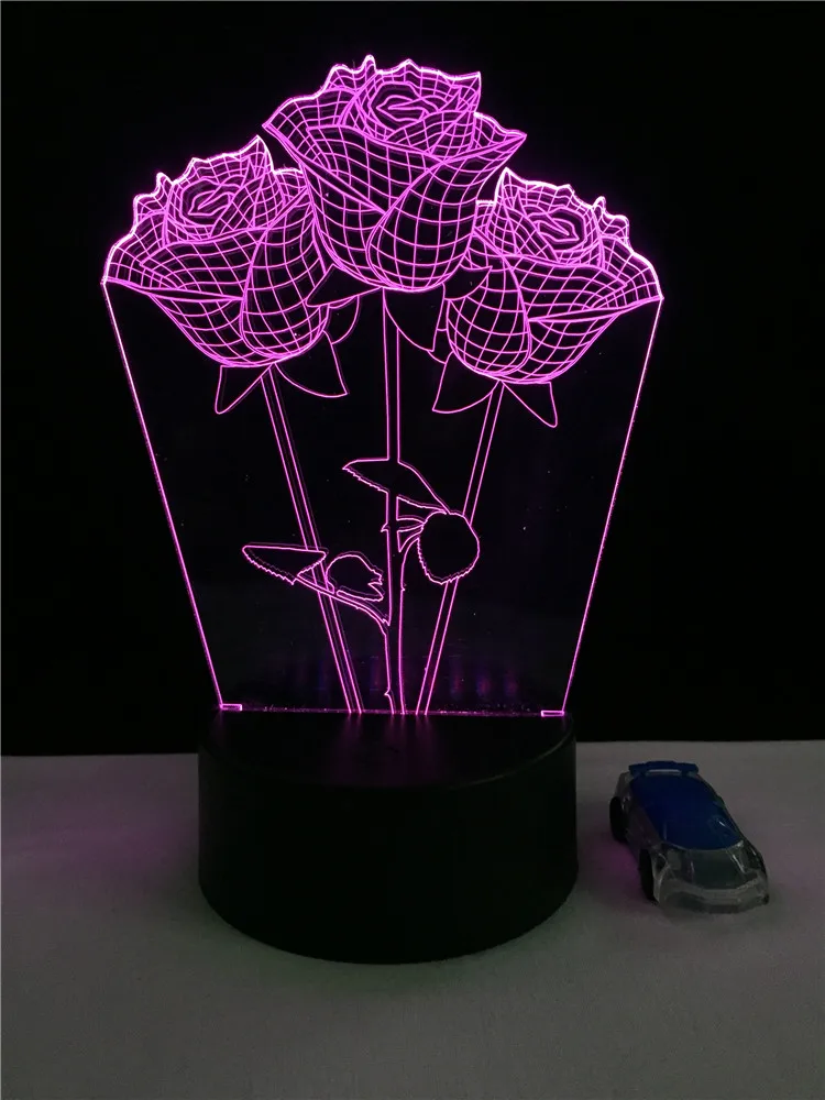 Romantic Roses Beauty 3D Lamp Night lighting LED USB Mood Fade Light Multicolor Home Design Change Table Desk Lamp