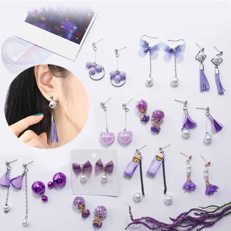 Sale 12 Models Allergy Free Long Tassel Drop Earring Purple Seaside Unique 1Pair Taro Color 2018 Arrival Hot Sale Exquesite