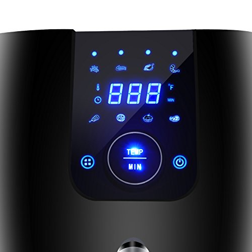 【Digital control panel includes 8 presets】Take the guesswork out of preparing various dishes using EIGHT preset settings. Features an LCD screen that displays cook temperature and time and lets you control these options with intuitive buttons. Fries, vegetables, fish, meat, drumstick, shrimp, pizza, steak, cake, frozen food etc. Cook two foods at once, and count on the NEWEST hot air technology to get a nice crisp on your foods.