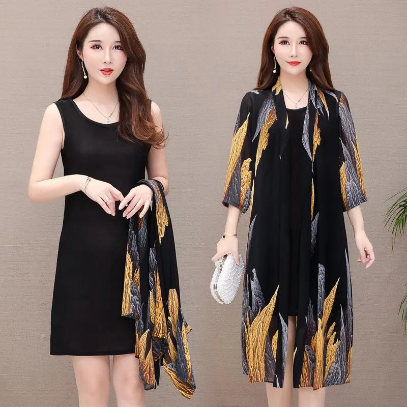 Two-Piece Dress 2019 Summer New Style WOMEN'S Elegant Kuotaitai High-End 40-Year-Old to 50 of Chiffon Suit